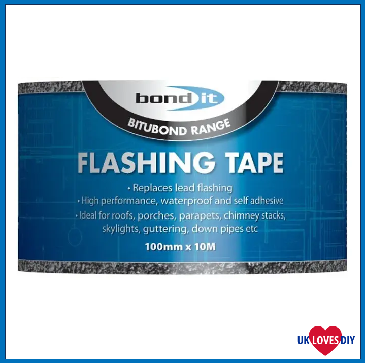 Bond It FLASHING TAPE is designed for use as flashing on flat and pitched roofs, on parapets and chimney stacks. It is also exceptional for sealing around RSJ’s, flues, concrete columns, rooflights, guttering and extractor vents. The strength of the facing gives resistance to puncturing and the bitumen gives flexibility and adhesion but without the problems of slump.